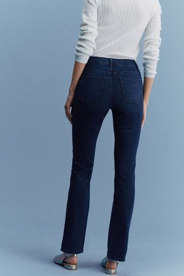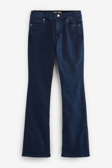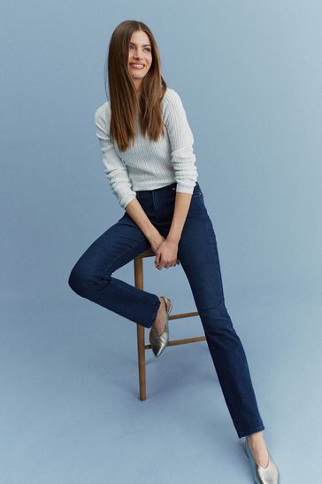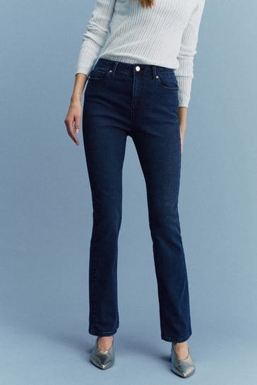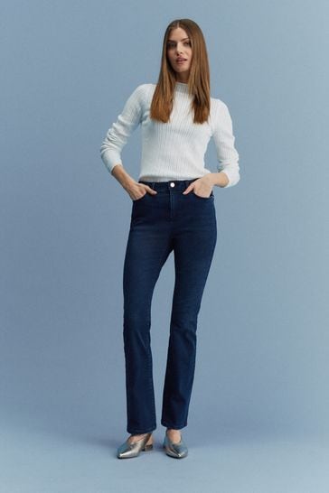 Soft stretch denim fabric. Flattering fit. High rise. Bootcut leg style. 5-pocket style. Zip fly and button fastening. Belt loops.