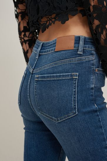 Our stretch flare jeans are made from soft cotton blend denim with just the right amount of stretch for all-day comfort. Figure-hugging through the waist and thighs, they come away perfectly at the leg to create the iconic flare shape. In a slimming and shaping silhouette, we hope these flattering flares become a wardrobe regular.