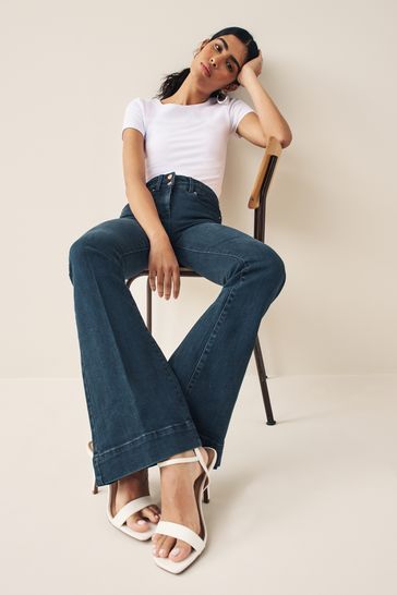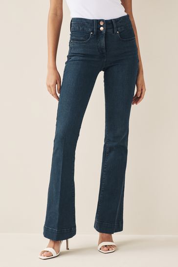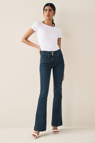 Upgrade your denim selection with these slim and shape flared jeans, featuring a sculpting waistband with a double button fastening, a flared leg and a classic 5-pocket design, finished with central leg creases.