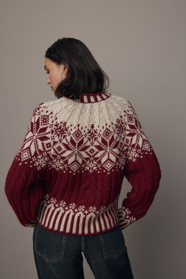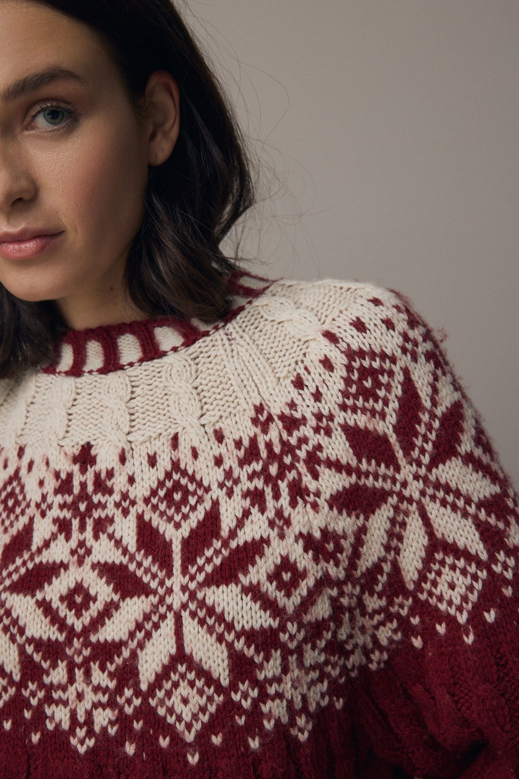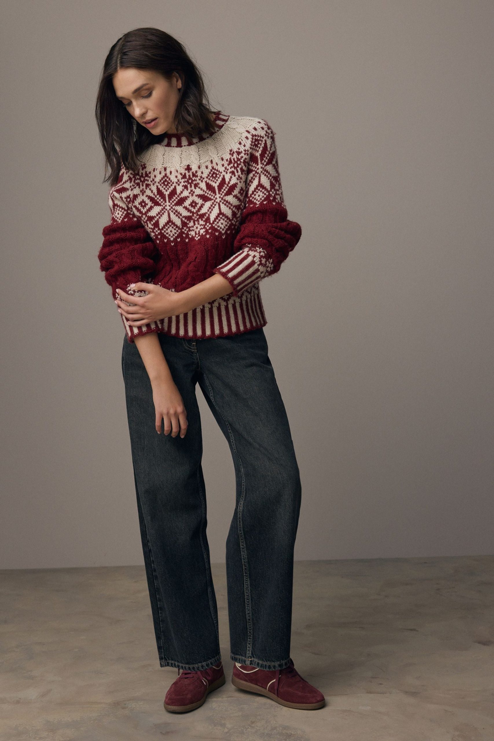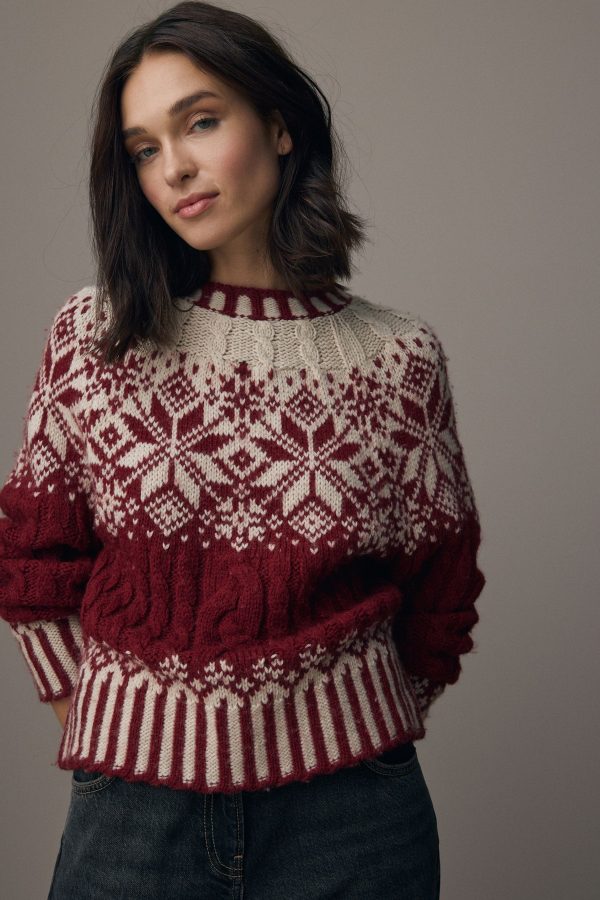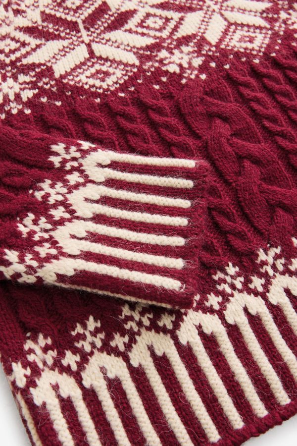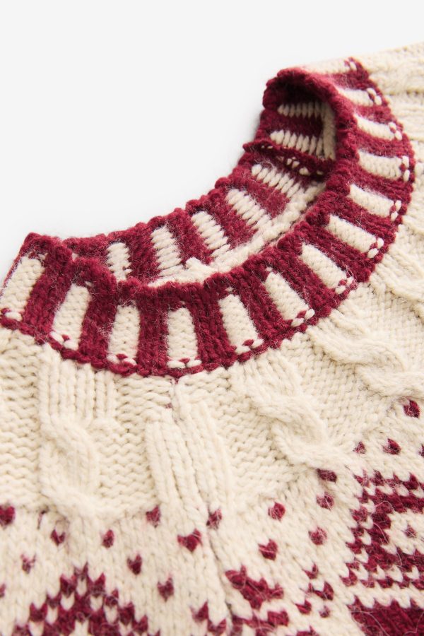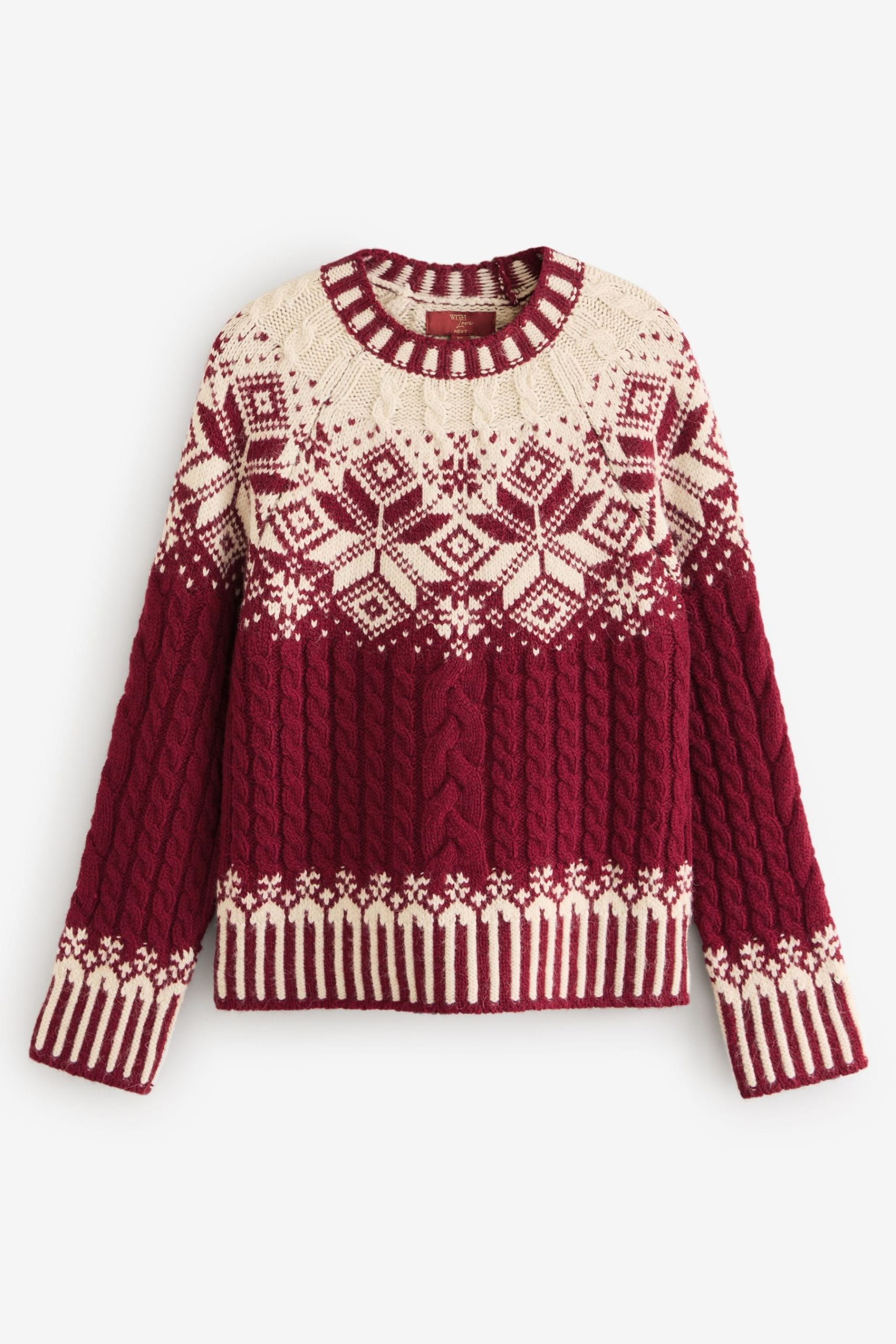 With a unique look for the festive season, this wool-blend red fairisle jumper has a short sleeve design with a crewneck collar, finished in a selection of different Christmas designs