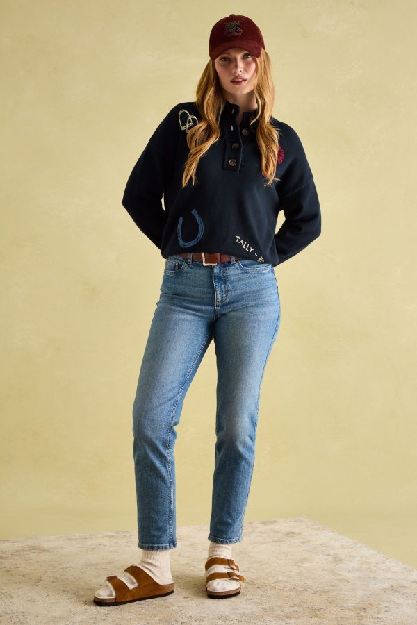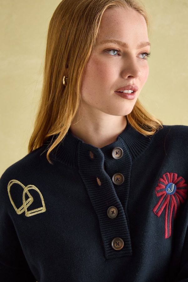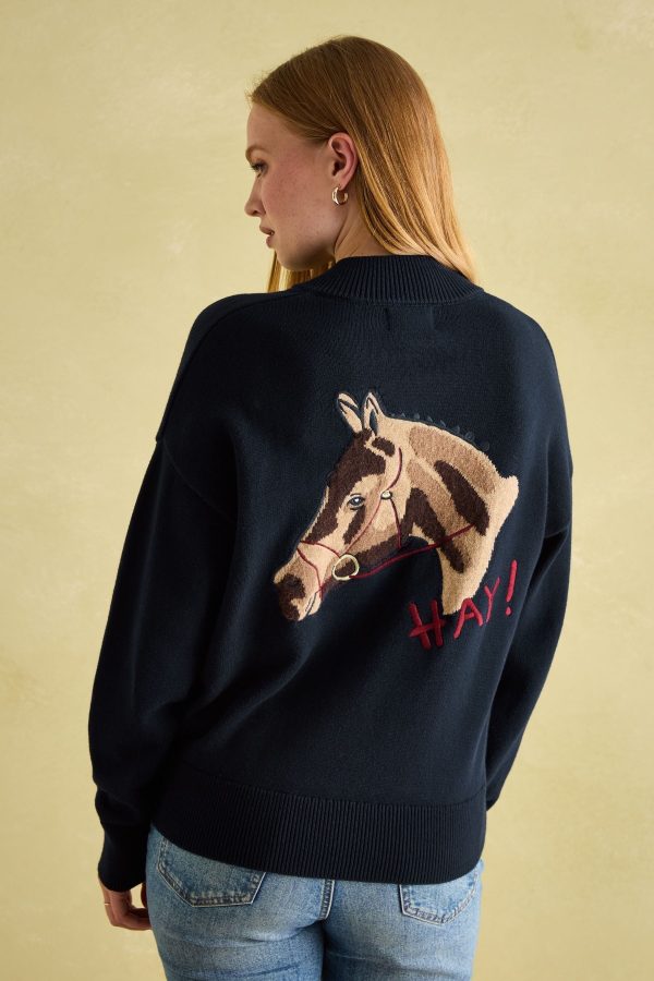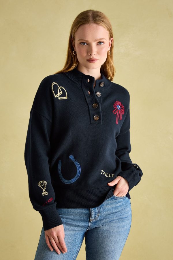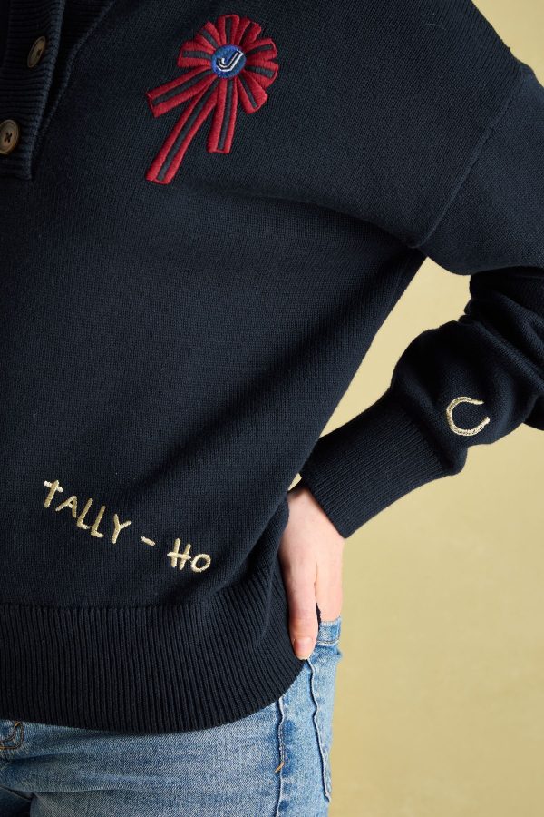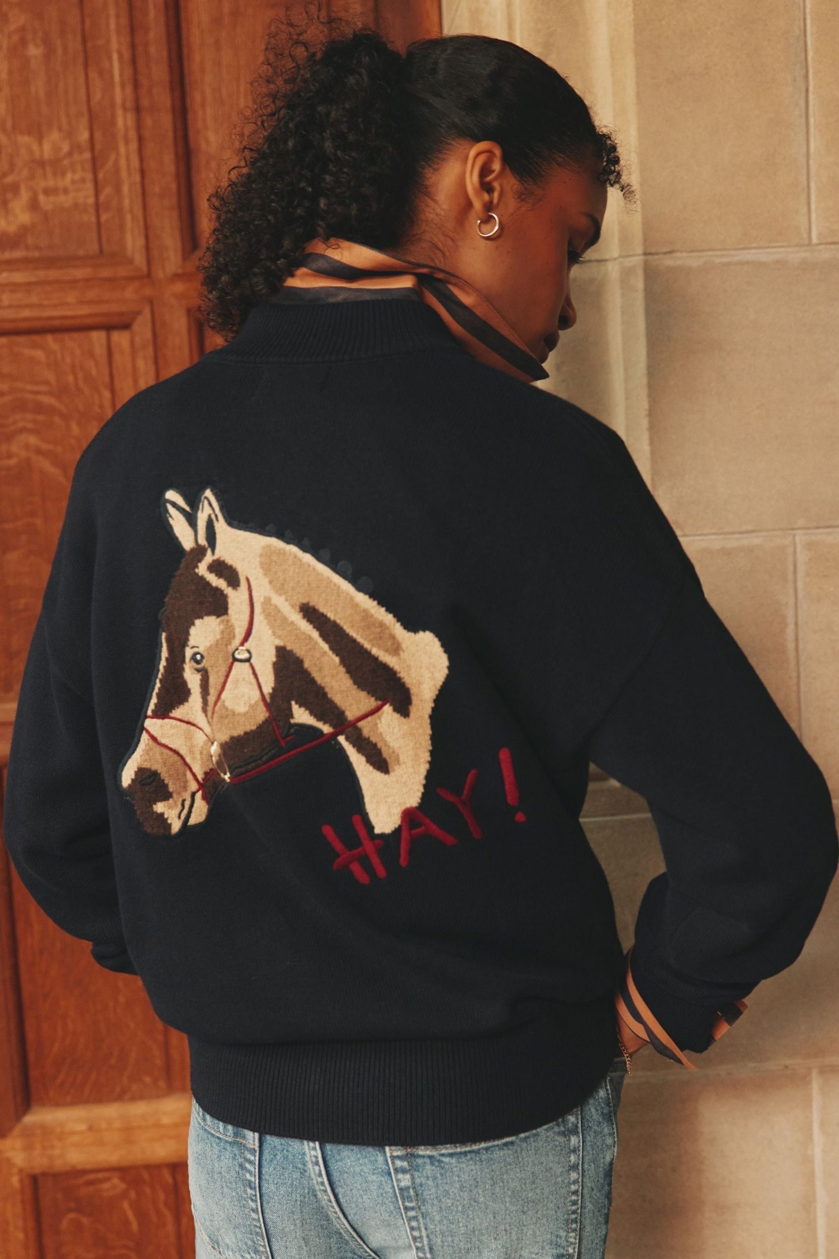 Take the new season by the reins and be playful with your style with the Buckley Jumper. The perfect blend of country and cool it features a mix of equestrian intarsia artwork and quality embroidered details to create a memorable piece that will certainly raise a few smiles. From a horseshoe and winning rosette to slogans and a surprise on the back, great attention to detail has been paid. The jumper itself is crafted from 100% cotton so you can trust it will be an enduring part of your wardrobe and has a quarter button placket which allows for versatile styling. Dropped shoulders adds a laid-back feel and it??s finished with ribbed hem, neck and cuffs. Simply style with jeans and trainers – and let the jumper do the talking! 100% cotton. Quarter button placket. Dropped shoulders. Ribbed neck, hem and cuffs. Equestrian embroideries and intarsia to the front and back