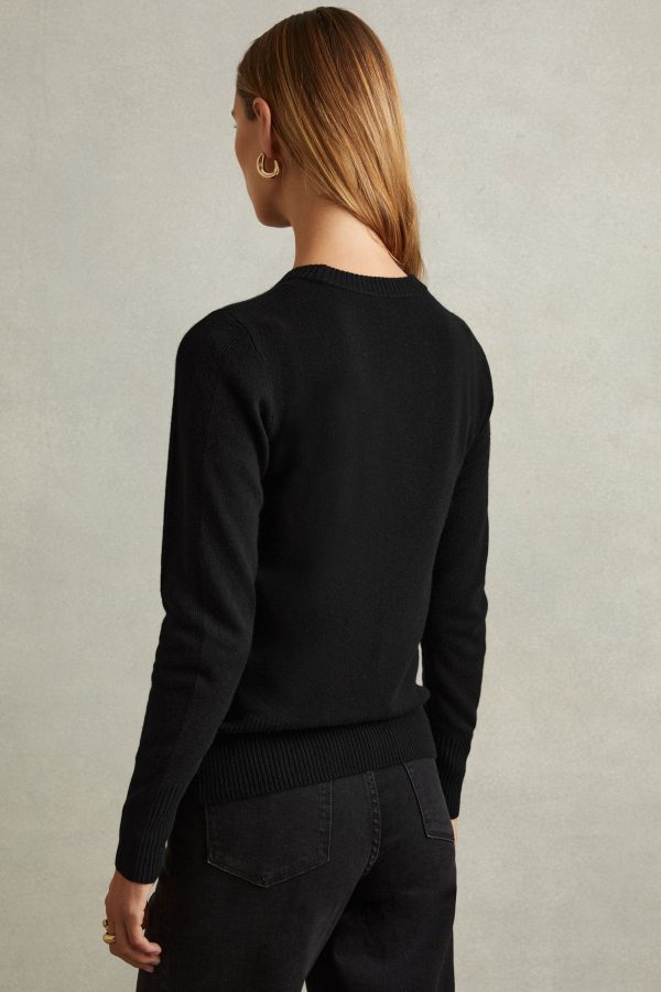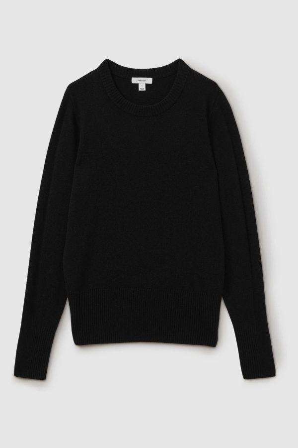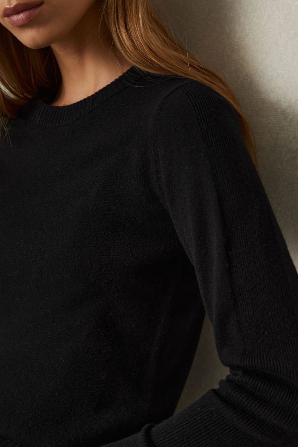 The Annie crew-neck jumper in khaki is enhanced with wool and cashmere for an elevated feel against the skin. Ribbed trims cinch the style through the cuffs, neckline, and waistband. Wool blend with cashmere Crew neckline Ribbed trims The model is wearing a size S. Measurements of model: Height 5ft 9” / 175cm.
