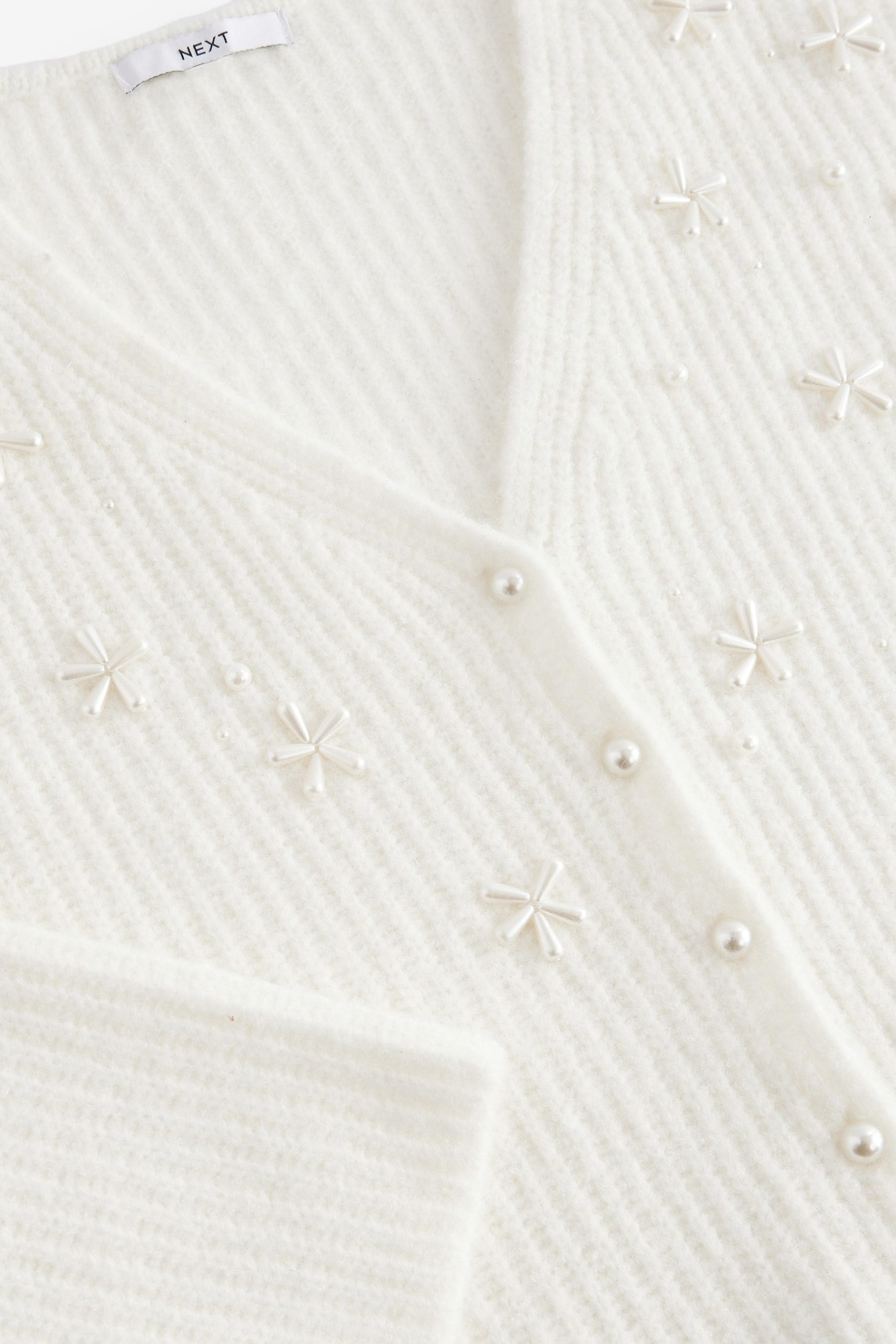Add a touch of sparkle to your autumn winter wardrobe with our pearl embellished soft touch knitted cardigan.The perfect layer to elevate any smart casual outfit, this statement piece has been designed for ultimate comfort and warmth alongside our signature high quality for an effortlessly chic look.