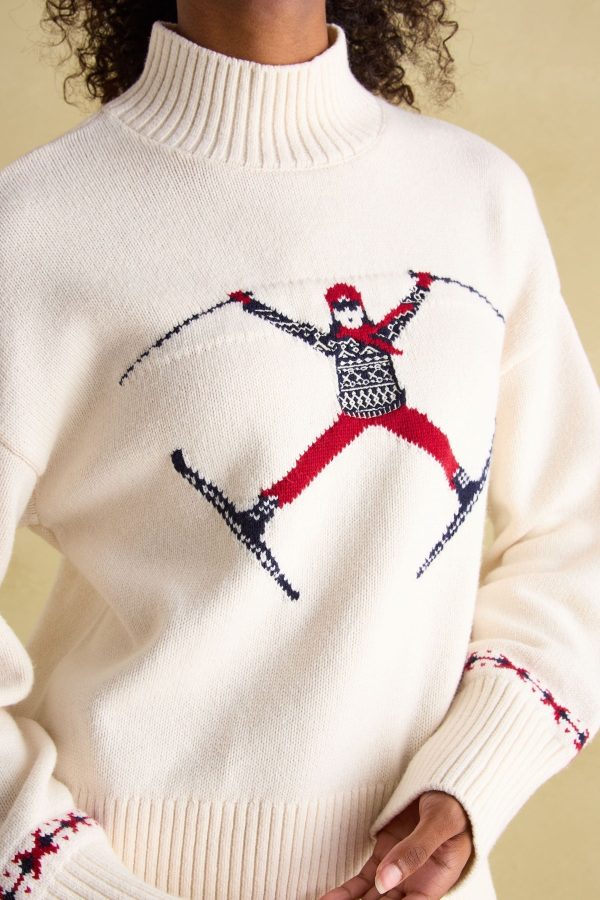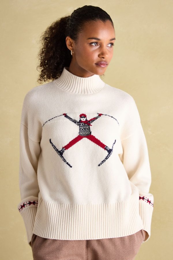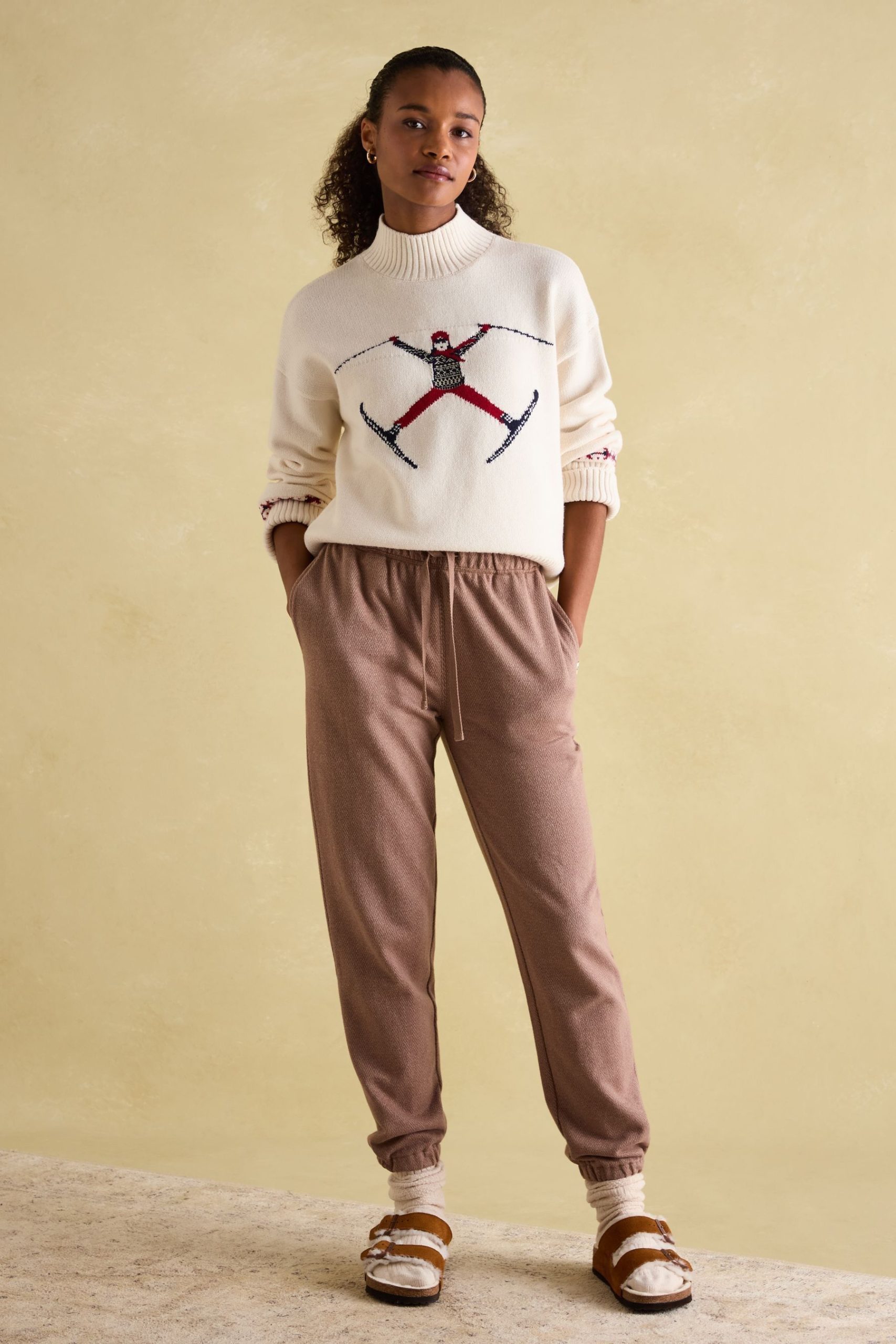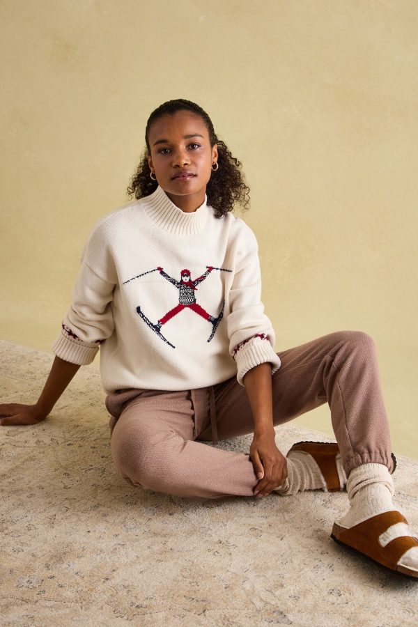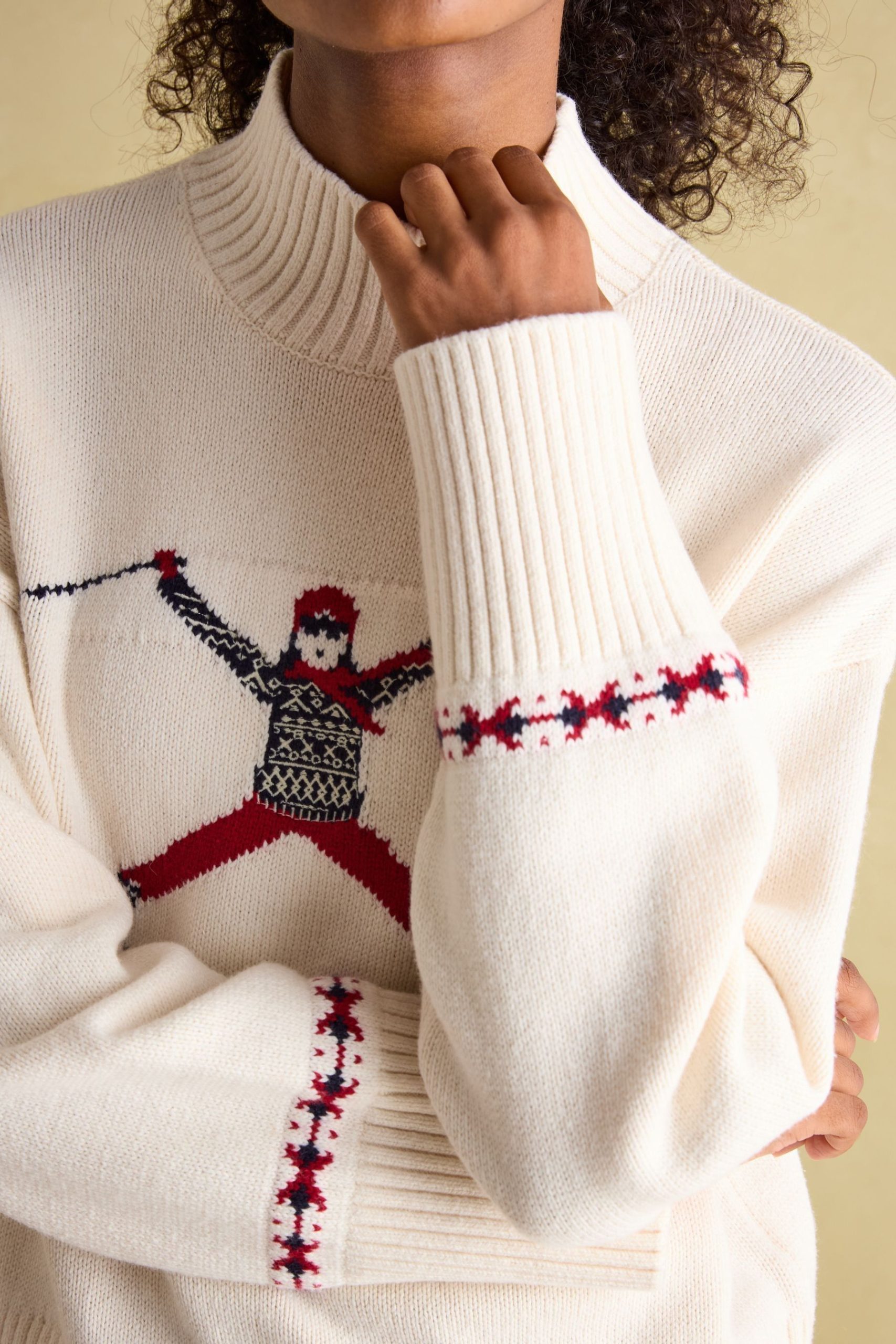Inspired by the vintage ski graphics of yesteryear, the Abigail jumper nods to nostalgia while feeling contemporary through its relaxed fit. It feels as good as it looks with a soft cotton and wool blend, dropped shoulders, wide sleeves and a ribbed high neck. It’s finished with a deep ribbed hem and cuffs which this year include Fair Isle detail. This is just the thing to wear, whether you’re hitting the slopes (or apr??s ski) for real, or exploring the snow blanketed hillsides closer to home.